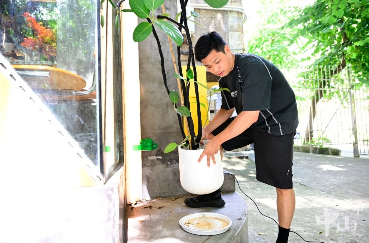 當(dāng)前,正值登革熱與基孔肯雅熱“兩熱”防控關(guān)鍵期。10月14日上午,記者見到林迪那天,身穿黑色T恤的他正在自己經(jīng)營的“日落咖啡”店忙碌。只見他手持驅(qū)蚊藥水細(xì)致噴灑,彎腰檢查綠植盆托是否有積水,轉(zhuǎn)身又麻利地清掃角落雜物?!拔覍Ψ牢眠@事特別上心,因為去年我自己得過登革熱,那種難受勁兒,真不想再經(jīng)歷。”今年31歲的林迪在東區(qū)街道花苑社區(qū)經(jīng)營著一家網(wǎng)紅咖啡店,同時也是花苑社區(qū)的一名網(wǎng)格員。