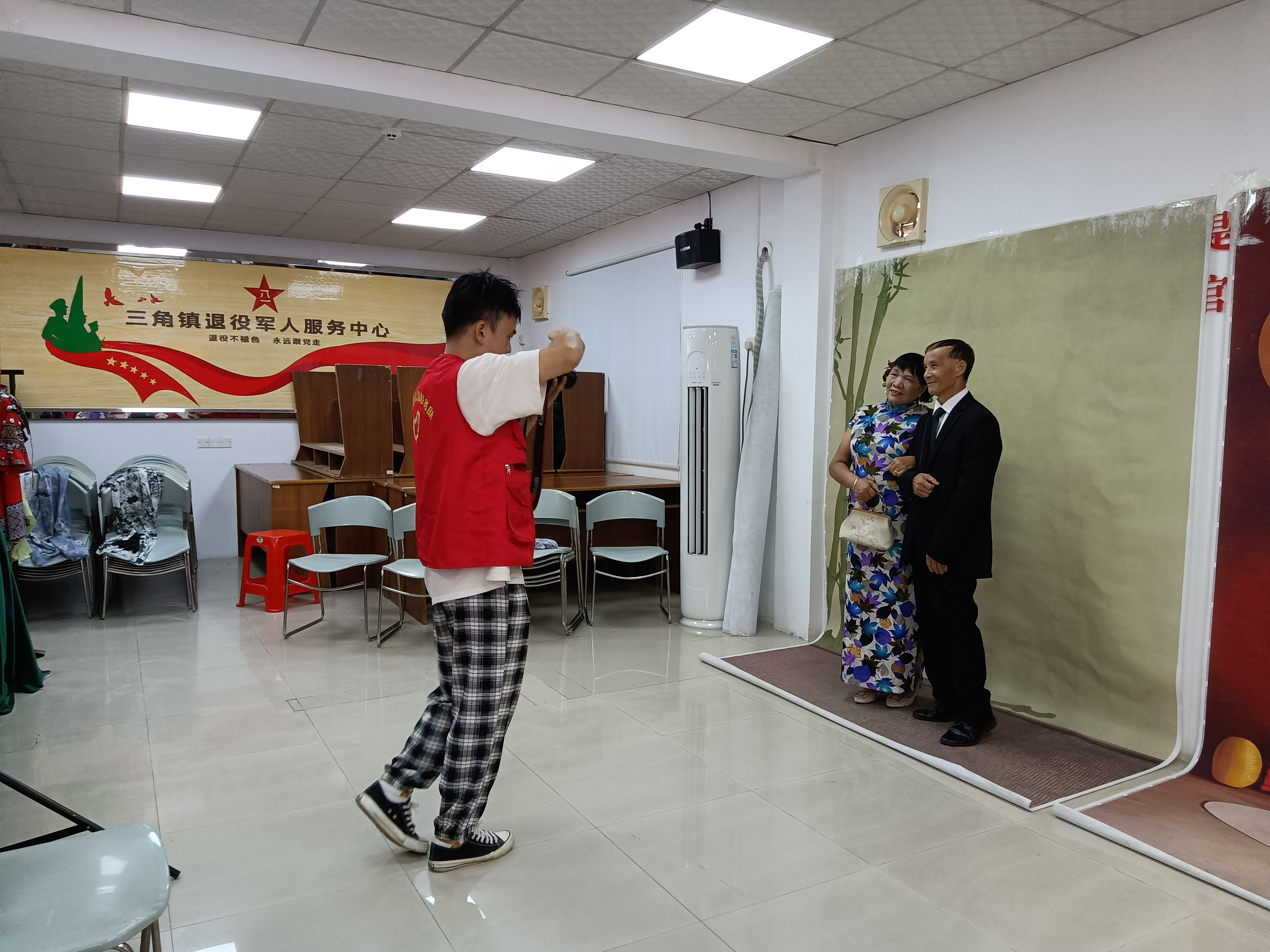 活動現場,三角鎮(zhèn)退役軍人服務中心的會議室被精心布置成臨時攝影棚,分為攝影區(qū)、化妝區(qū)、服裝區(qū)、選片區(qū)和等候區(qū)等多個功能區(qū)域,流程清晰、服務周到。工作人員耐心為退役軍人及家屬化妝、整理服裝、調整發(fā)型,細致指導拍攝姿勢與表情。攝影師一邊捕捉動人畫面,一邊認真傾聽老兵們講述崢嶸歲月。在輕松愉快的氛圍中,一個個拍攝任務順利完成,活動現場歡聲不斷、暖意融融。